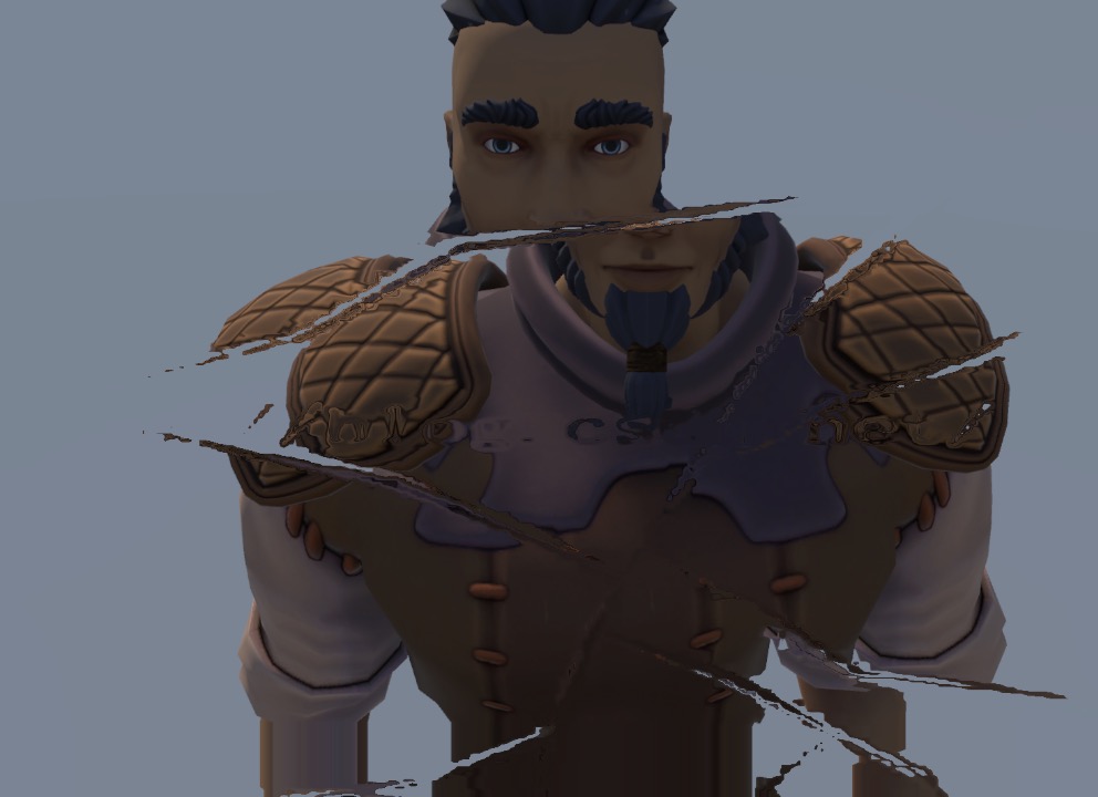 | v2f vert(a2v v) { v2f o; o.pos=UnityObjectToClipPos(v.vertex); o.uv.xy=TRANSFORM_TEX(v.texcoord,_MainTex); o.uv.zw=TRANSFORM_TEX(v.texcoord, _BrokenNormalMap); return o; } fixed4 frag(v2f i) : SV_Target{